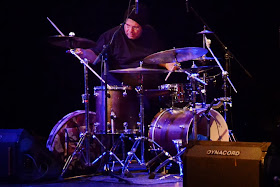 Das Konzert begann dabei noch ganz ruhig. In "Elfenklang" (welch schönes Wortspiel) ließ Walter Lang seine Pianoakkorde lange nachhallen, von Sven Faller am Bass nur sparsam begleitet – bis dann plötzlich und laut Gerwin Eisenhauers Schlagzeug einsetzte. Mit einem einfachen klaren Rhythmus, aber mit vollem Einsatz. Bereits dieser Beginn stand für den kompletten Abend, (wenige) ruhige Teile wechselten sich mit lauten kräftigen ab. An den ruhigen Stellen eines Stückes konnte man durch den Einsatz von Elektronik indische Tabla-Klänge heraushören, konnte man die Augen schließen und träumen, bis dann, als wäre es den Musikern zu ruhig geworden, das Schlagzeug die Musik explosionsartig in ein wildes Furioso verwandelt. Die von Mario Sütel vom Mischpult aus zugespielten Klänge – oft von den Instrumenten unmittelbar abgegriffene Töne, gesampelt und verfremdet und dann wieder eingespielt – waren an vielen Stellen deutlicher Bestandteil der Musik, jedoch nie in einem störenden Übermaß. So waren dann auch mal Instrumente zu hören, die auf der Bühne nicht zu finden waren, wie die singenden Sägen in "Down". Oder gesampelte Schlagzeugklänge, mit denen Sütel in Dialog mit Eisenhauer trat. Interessant war auch "Why? Because!", eine (wie die Musiker sagten) Mischung zwischen Bach und Beatles, (oder wie ich sagen würde: irgendwas zwischen Dur, Moll und 12-Ton-Musik), bei dem tatsächlich Fugen von Bach herauszuhören waren: 1. Satz Andante, 2. Satz Allegro Prestissimo. Ja, laut war die Musik, teils bis fast an die Schmerzgrenze heran. Und obwohl ich da ein wenig empfindlich bin – bei Trio Elf hat das alles zusammengepasst, leiser hätte man die Musik kaum richtig über die Bühne bringen können. Mein Favorit (auch von der aktuellen Live-CD, die beim Schreiben grad im Hintergrund läuft): Hammer Baby Hammer! – Maschinenmusik, bei der ein D-Zug durchs Publikum fährt.